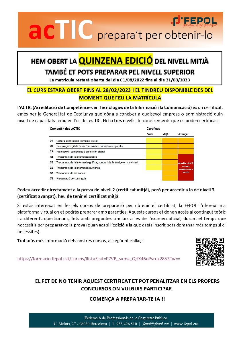 Per a qualsevol consulta podeu trucar al telèfon de Fepol 933 42 68 10 (Opció 6) on se us donarà tota la iformació que us calgui.